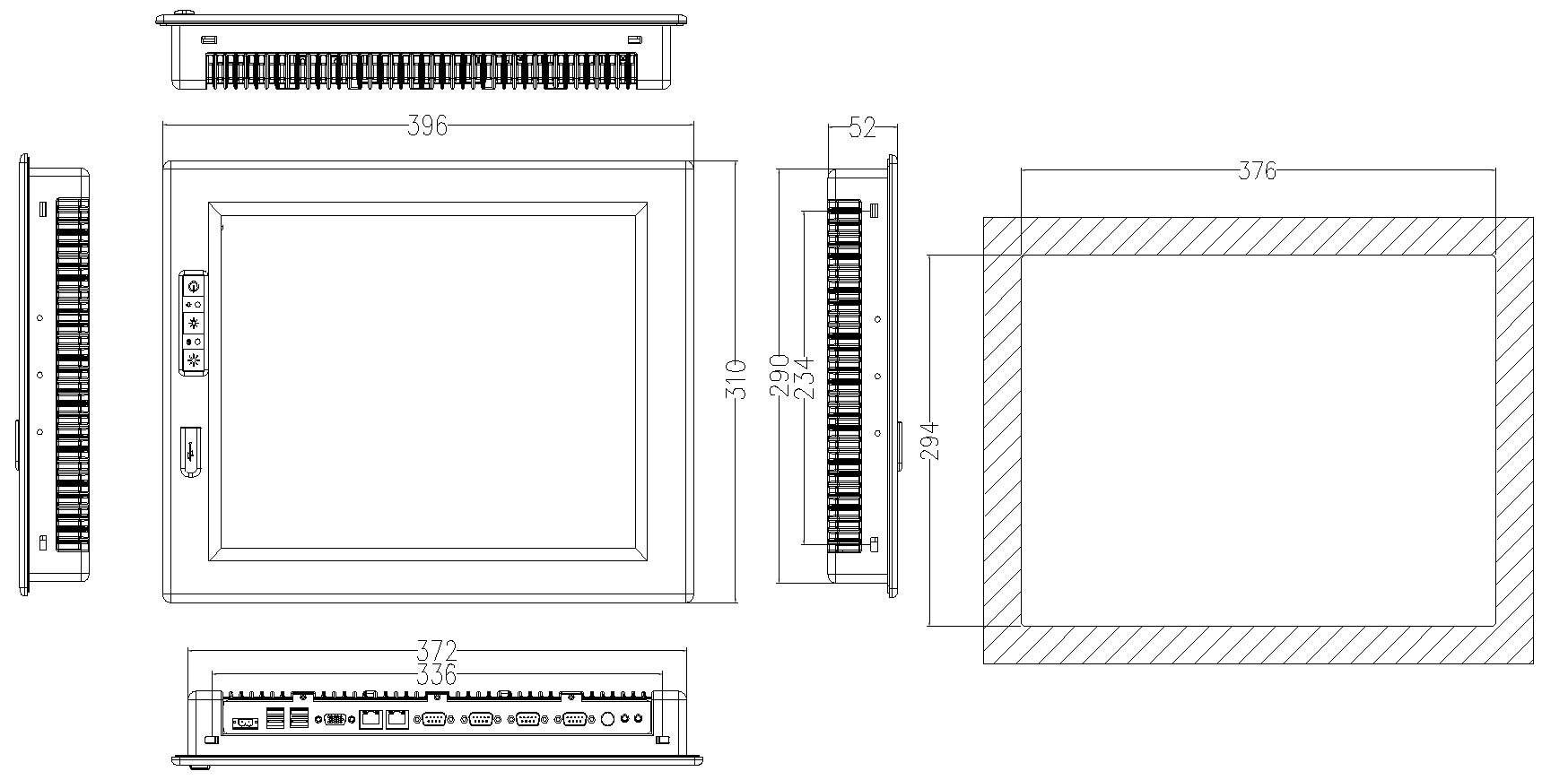 ●15"工業級顯示屏 電阻式觸摸屏 ●標配4GB內存,最大支持8GB ●4*USB、4*串口、1個PS2、2個LAN、1*DC電源插座 ●1個VGA、1個SPK OUT & MIC、4*RS-232/485 ●鋁合金壓鑄整體成型,符合NEMA 、Ip65防護等級 ●面板顏色: 銀灰色 |